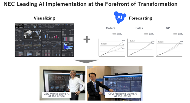 NEC positions itself as “Client Zero” (the first customer of its own solutions), building a model for corporate transformation by leveraging cutting-edge technologies, including AI. It also extends these results to its customers, with the introduction of AI into management dashboards, for example. This enables not only the visualization of actual performance data but also the incorporation of performance forecasts, facilitating rapid decision-making and swift action to anticipate future developments.